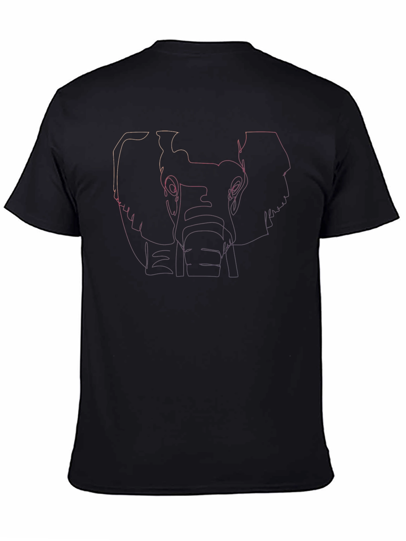Show off your wild side with this unique black t-shirt featuring an abstract elephant outline design. The eye-catching graphic uses vibrant color gradients to bring a modern twist to a classic animal motif. Made from a comfortable, soft-touch fabric, this tee is perfect for casual wear, adding a touch of artistic flair to your everyday look. Great for animal lovers, art enthusiasts, or anyone who wants to stand out from the crowd. Pair it with jeans or shorts for a relaxed, stylish ensemble. Make a statement with this bold and creative graphic tee!