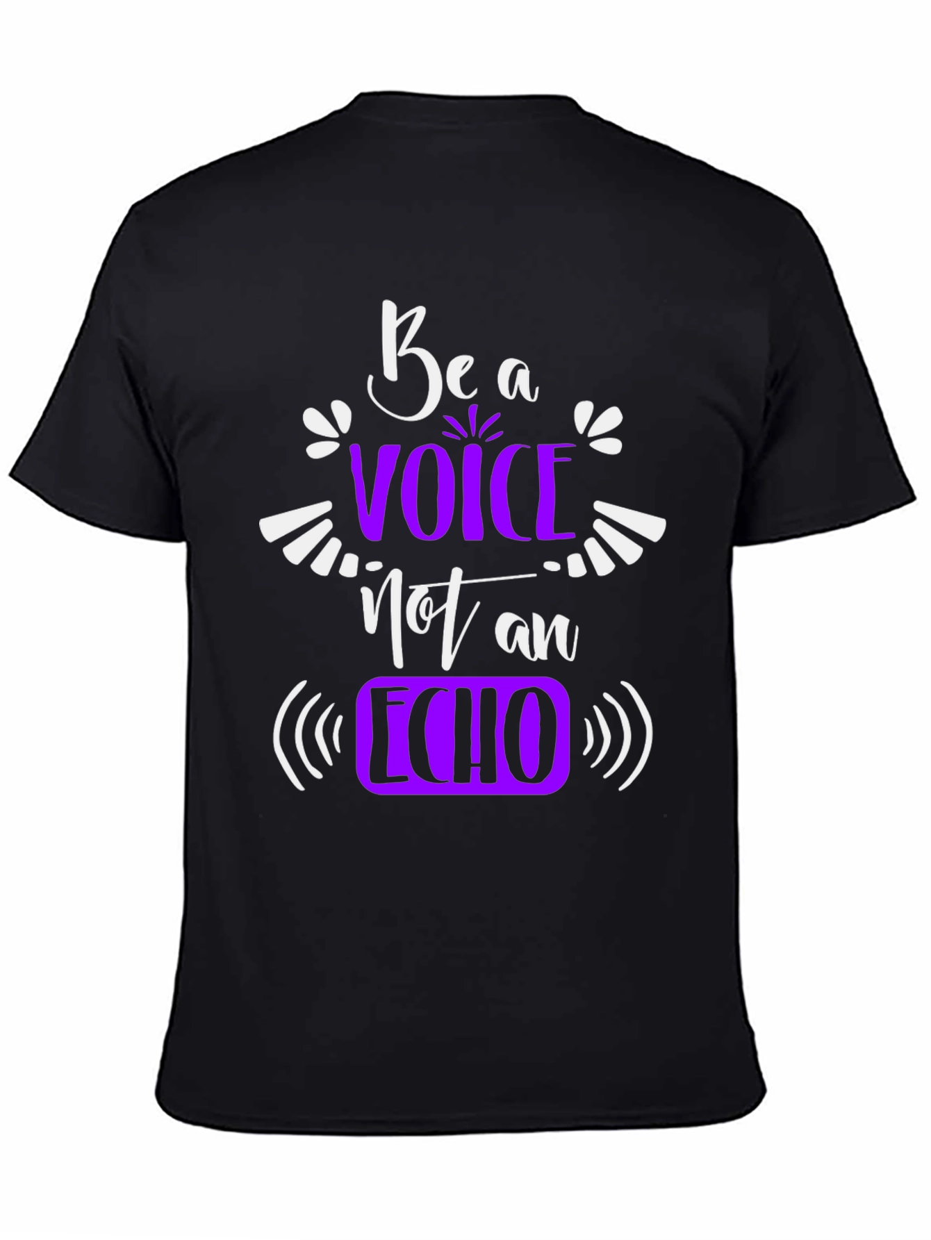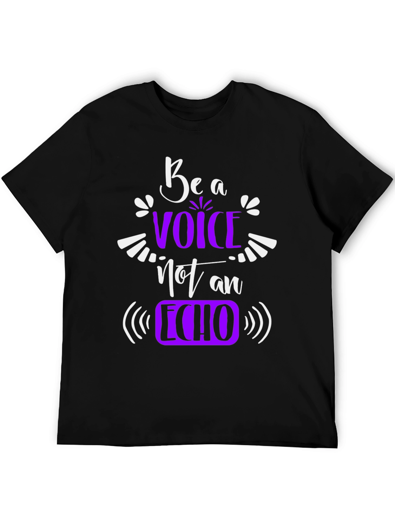 Express yourself with this stylish and meaningful graphic t-shirt. The shirt features the phrase "Be a Voice, Not an Echo" in a combination of white and purple lettering. The design is eye-catching and motivational. Made from a comfortable, breathable fabric, this short-sleeve tee is perfect for everyday wear. It's a great way to share a positive message and showcase your unique personality. Pair it with jeans or shorts for a casual, trendy look. A statement piece that's sure to spark conversations and inspire others to find their own voice.