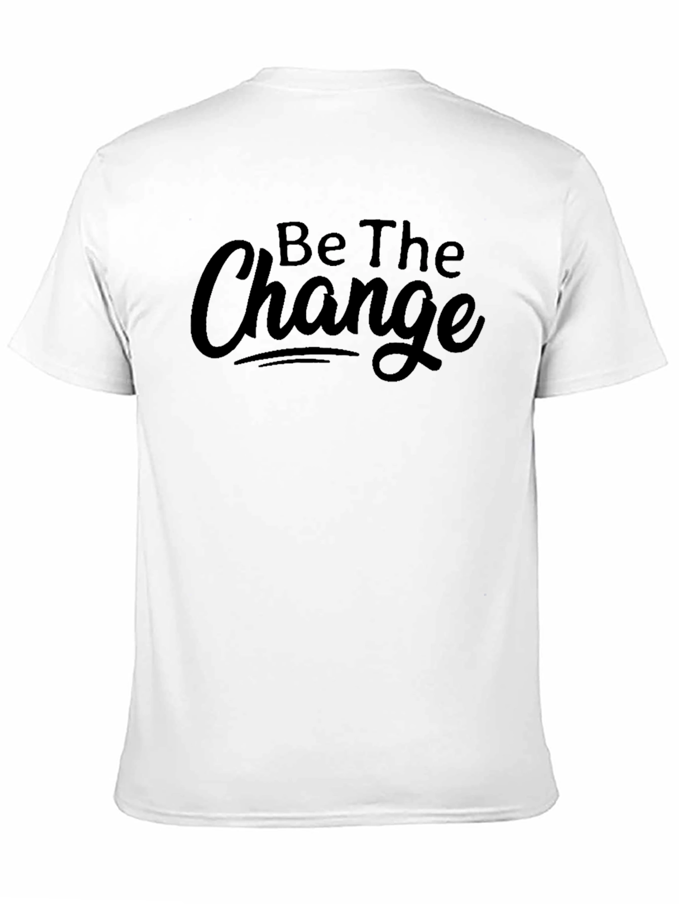 This stylish black t-shirt features a powerful message, “Be The Change,” boldly printed across the chest. The classic crew neck design and short sleeves offer a comfortable and casual fit, perfect for everyday wear. Made from soft, breathable fabric, this tee ensures all-day comfort. Its versatile style makes it easy to pair with jeans, shorts, or even dress it up with a blazer. Whether you're making a statement or simply looking for a comfortable tee, this shirt is a great addition to any wardrobe. Show the world you are ready to "Be The Change."