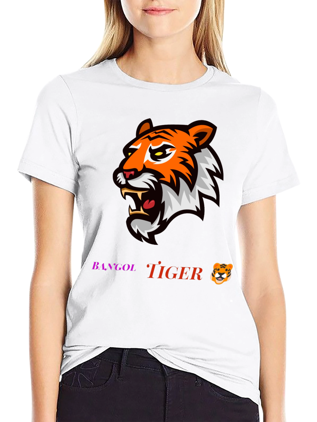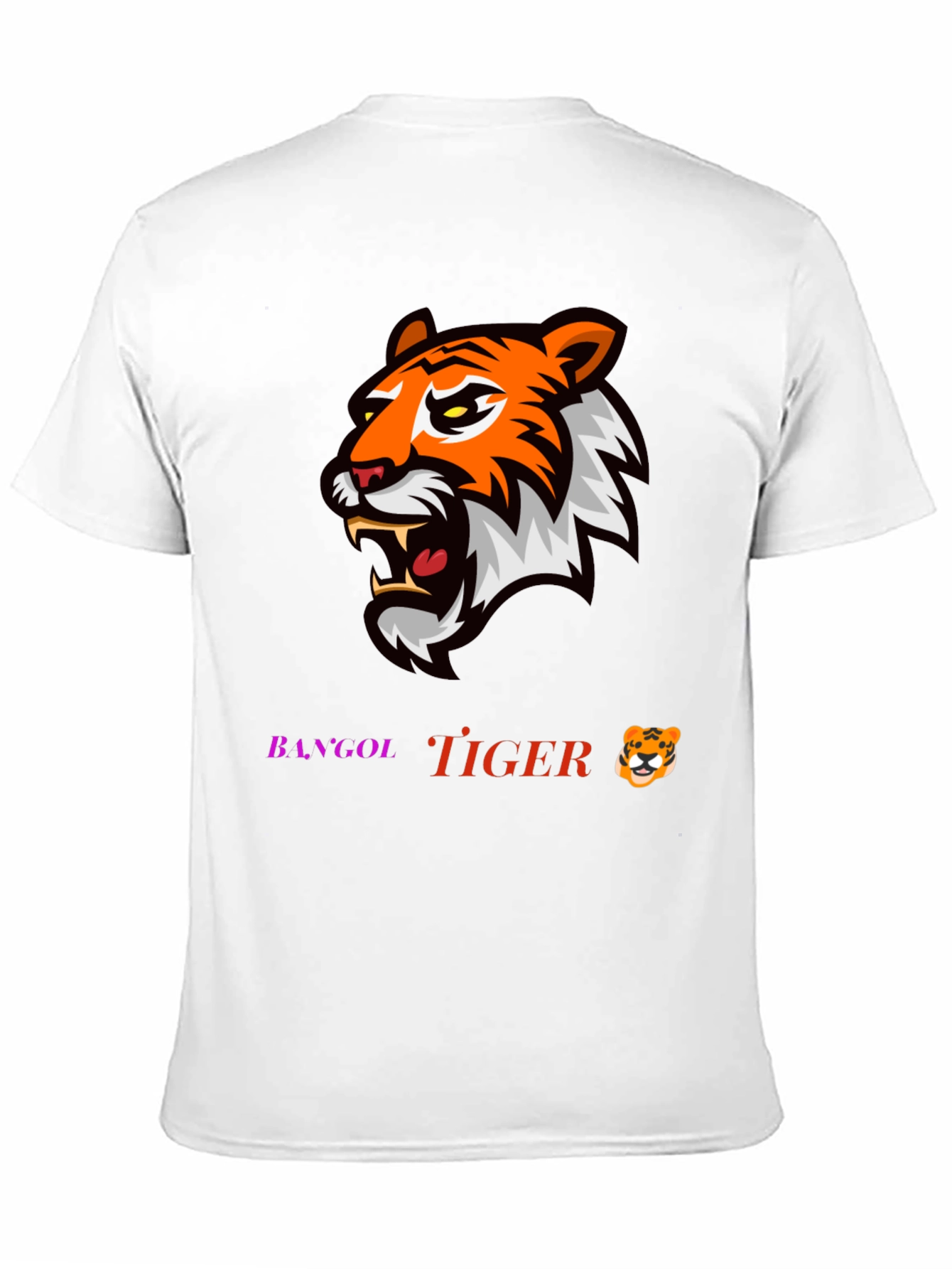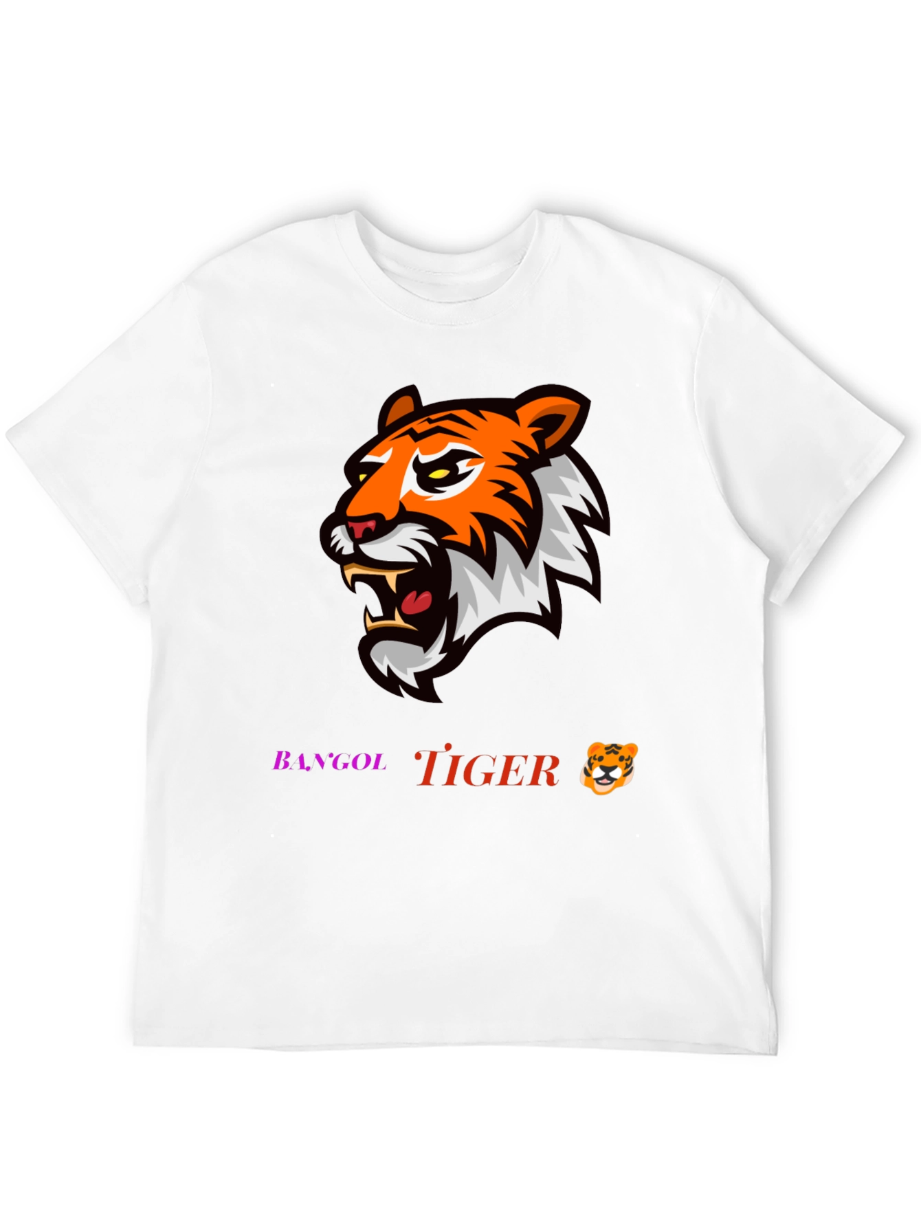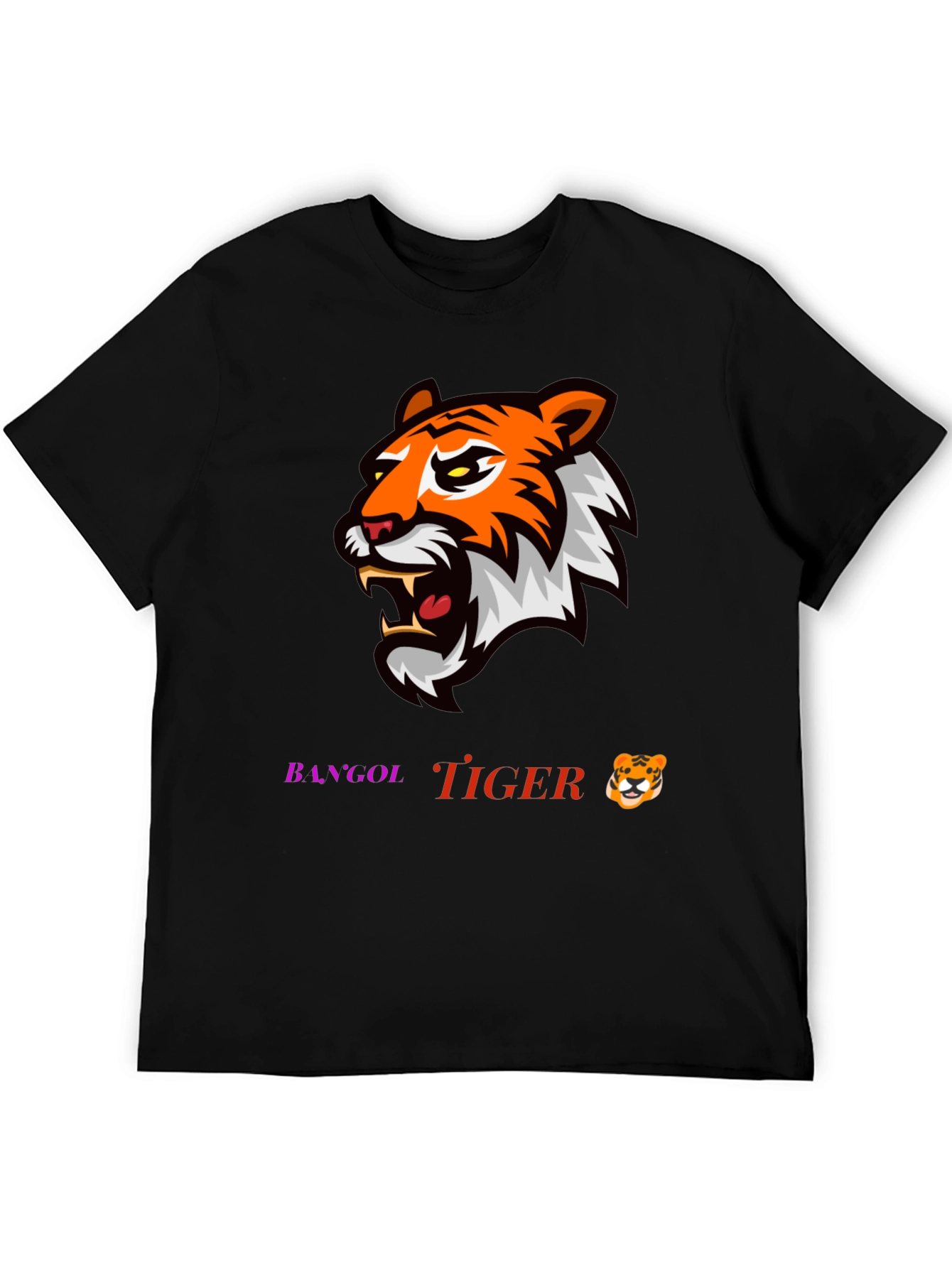 Unleash your inner roar with this striking black t-shirt featuring a bold Bengal tiger graphic. The fierce tiger head design, complete with vivid orange and white details, makes a powerful statement. The shirt also has Bengal Tiger text with a smaller tiger graphic. Crafted from a comfortable-looking fabric, this tee is perfect for casual wear, workouts, or making a statement wherever you go. The classic fit and soft material ensure all-day comfort, while the eye-catching design guarantees you'll stand out from the crowd. Show off your wild side with this must-have tiger tee!