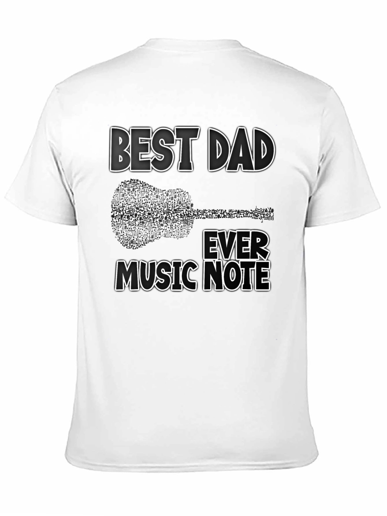 Show your love for music and your dad with this unique graphic t-shirt. The black tee features the phrase "Best Dad Ever Music Note" in a bold, eye-catching white font. The shirt includes a guitar created out of musical notes, perfect for music-loving dads. Made from comfortable and breathable fabric, this tee is ideal for casual wear, concerts, or just lounging around the house. Get this tee for dad, perfect for Father’s Day, birthdays, or just to show him how much he’s loved.