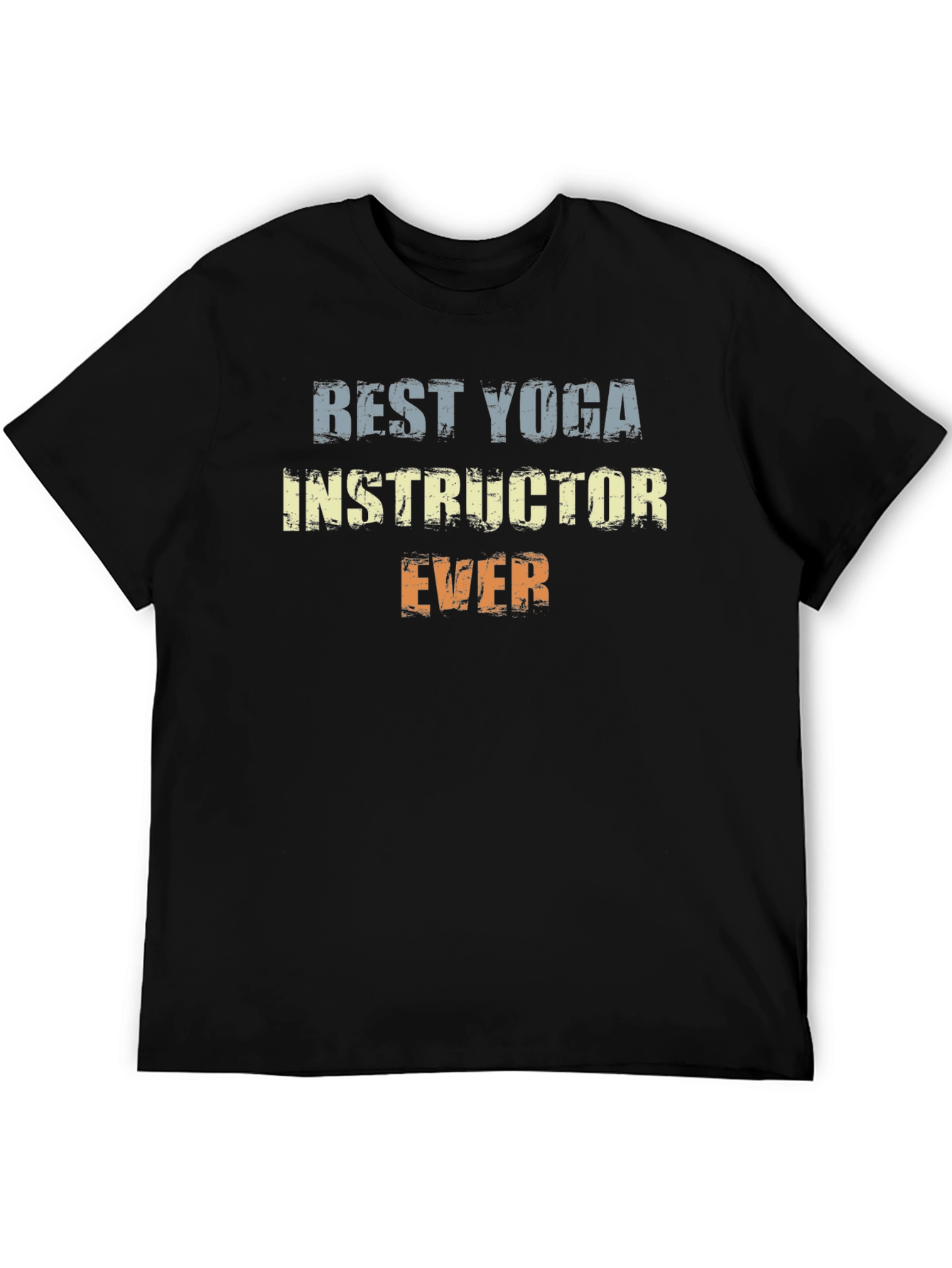 This stylish black t-shirt is perfect for any yoga enthusiast. The shirt features a bold, distressed text design that reads "BEST YOGA INSTRUCTOR EVER" in shades of blue, yellow, and orange. Made from a comfortable-looking fabric, this tee offers a relaxed fit and is ideal for casual wear or yoga sessions. Show off your passion for yoga with this eye-catching and unique design. Whether you're at the studio, running errands, or just lounging at home, this t-shirt is a great way to express your love for yoga. It also makes a thoughtful gift for your favorite yoga instructor.