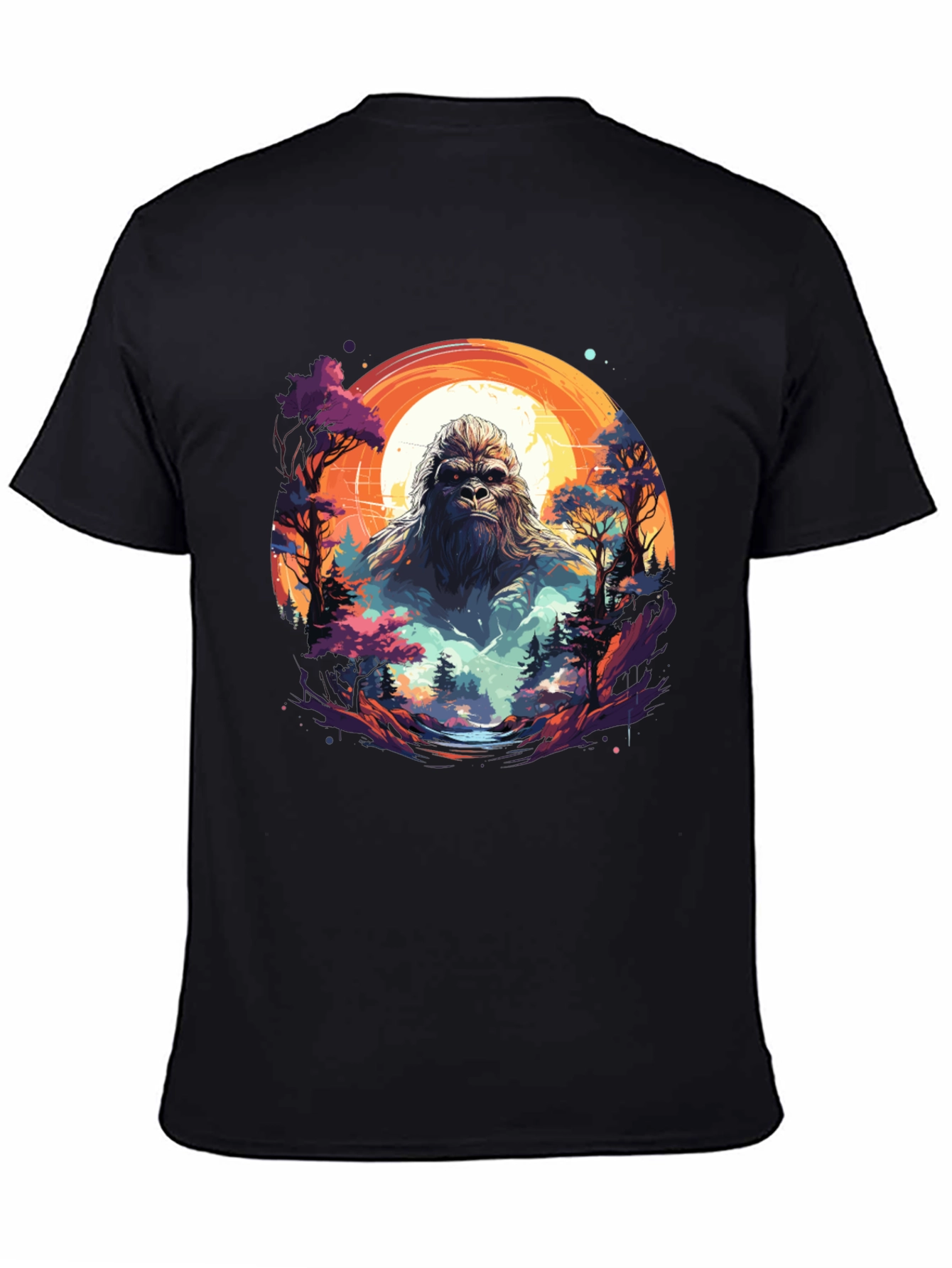 Embrace the legend with this unique Bigfoot graphic tee! The shirt features a vibrant design of Bigfoot emerging from a mystical forest silhouetted against a radiant sunset. Perfect for nature lovers, cryptozoology enthusiasts, and anyone who appreciates a cool, eye-catching graphic. Made from comfortable, breathable fabric, this tee is ideal for everyday wear or as a conversation starter. Show off your adventurous spirit and add a touch of mystery to your wardrobe with this must-have Bigfoot t-shirt.