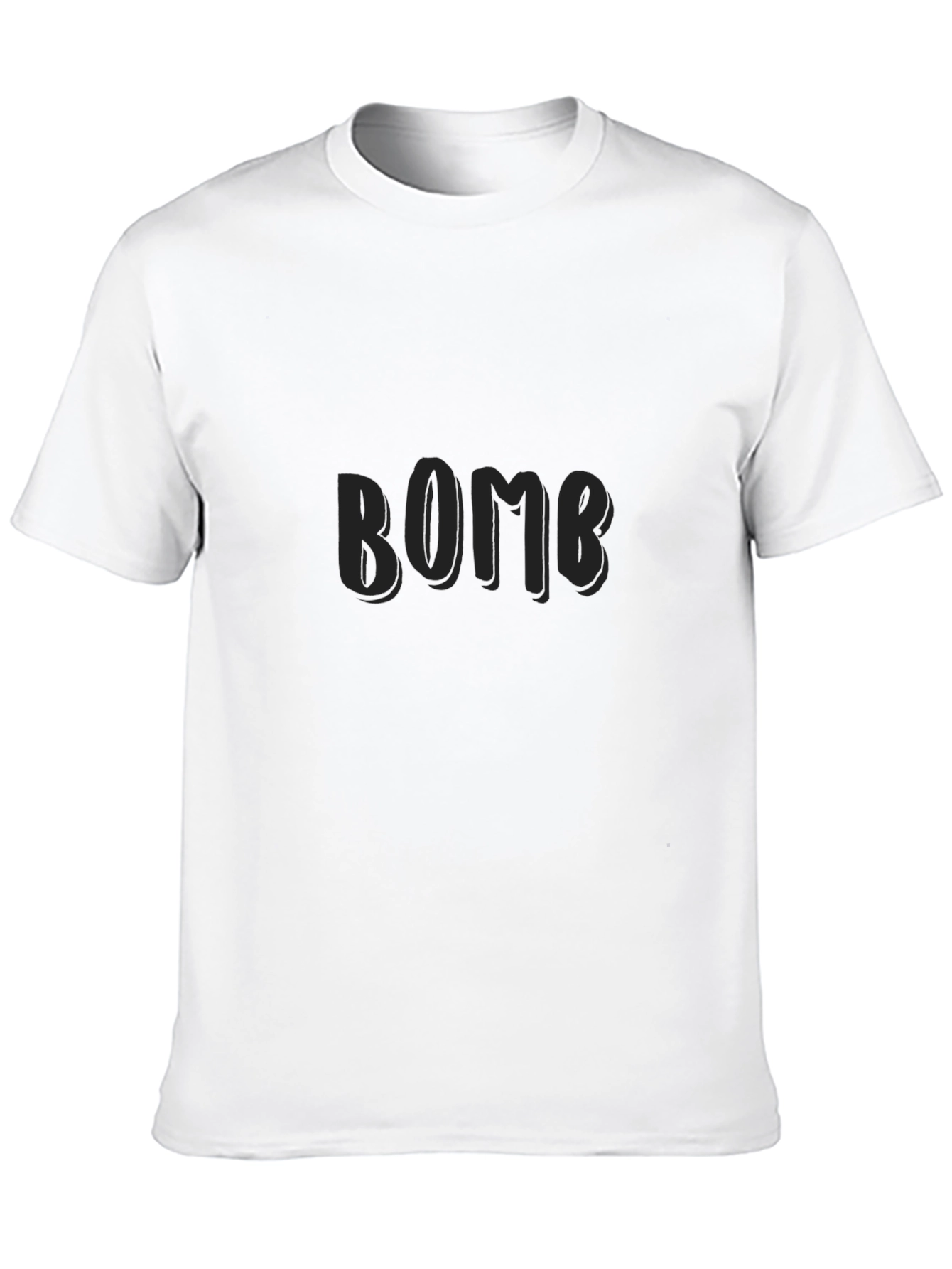 This classic black t-shirt features a subtle yet bold "BOMB" graphic, perfect for adding a touch of edgy style to your everyday wardrobe. Made from a soft, comfortable fabric, this tee is designed for all-day wear. The timeless design and neutral color make it easy to pair with jeans, shorts, or joggers for a variety of casual looks. Whether you're heading to a concert, hanging out with friends, or just relaxing at home, this t-shirt is a stylish and comfortable choice. Show off your unique style with this must-have graphic tee.