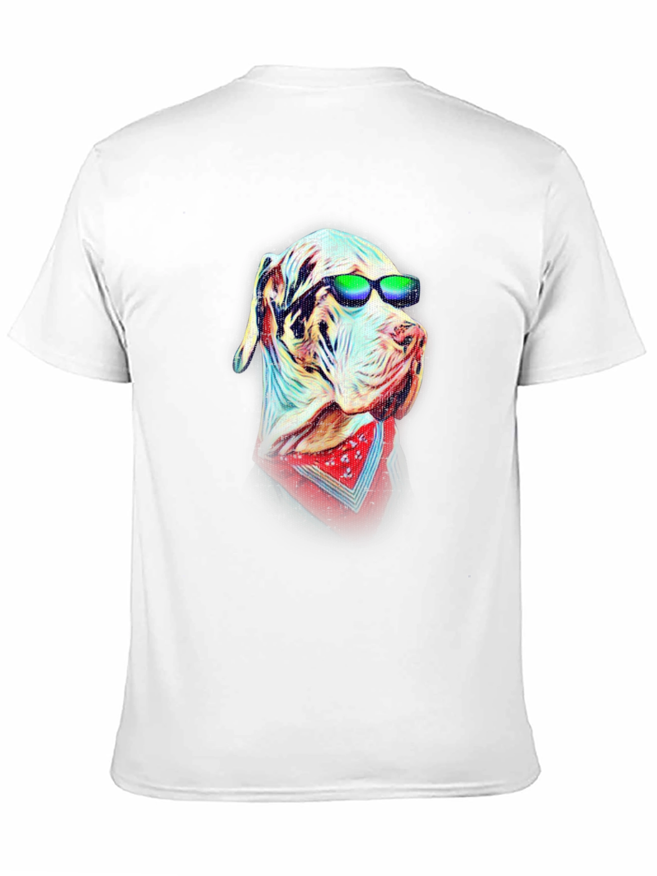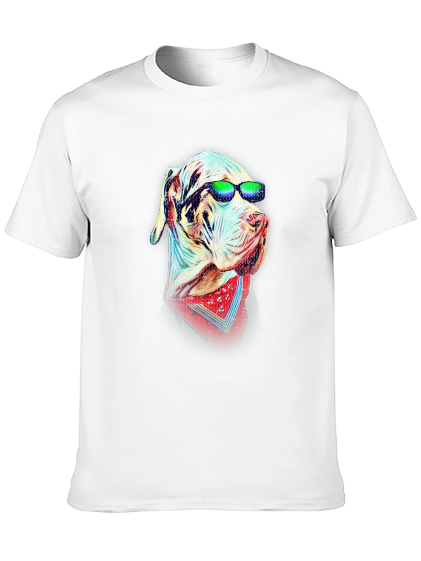 Rock a unique look with this stylish black t-shirt featuring a vibrant graphic design. The focal point is a cool canine sporting shades and a red bandana, rendered in a fun, artistic style. Made from comfortable material, this tee is perfect for casual wear, making a statement wherever you go. The detailed design adds a touch of personality to any outfit. Show off your love for dogs and stand out from the crowd with this eye-catching graphic tee. Ideal for everyday wear, concerts, or just hanging out with friends.