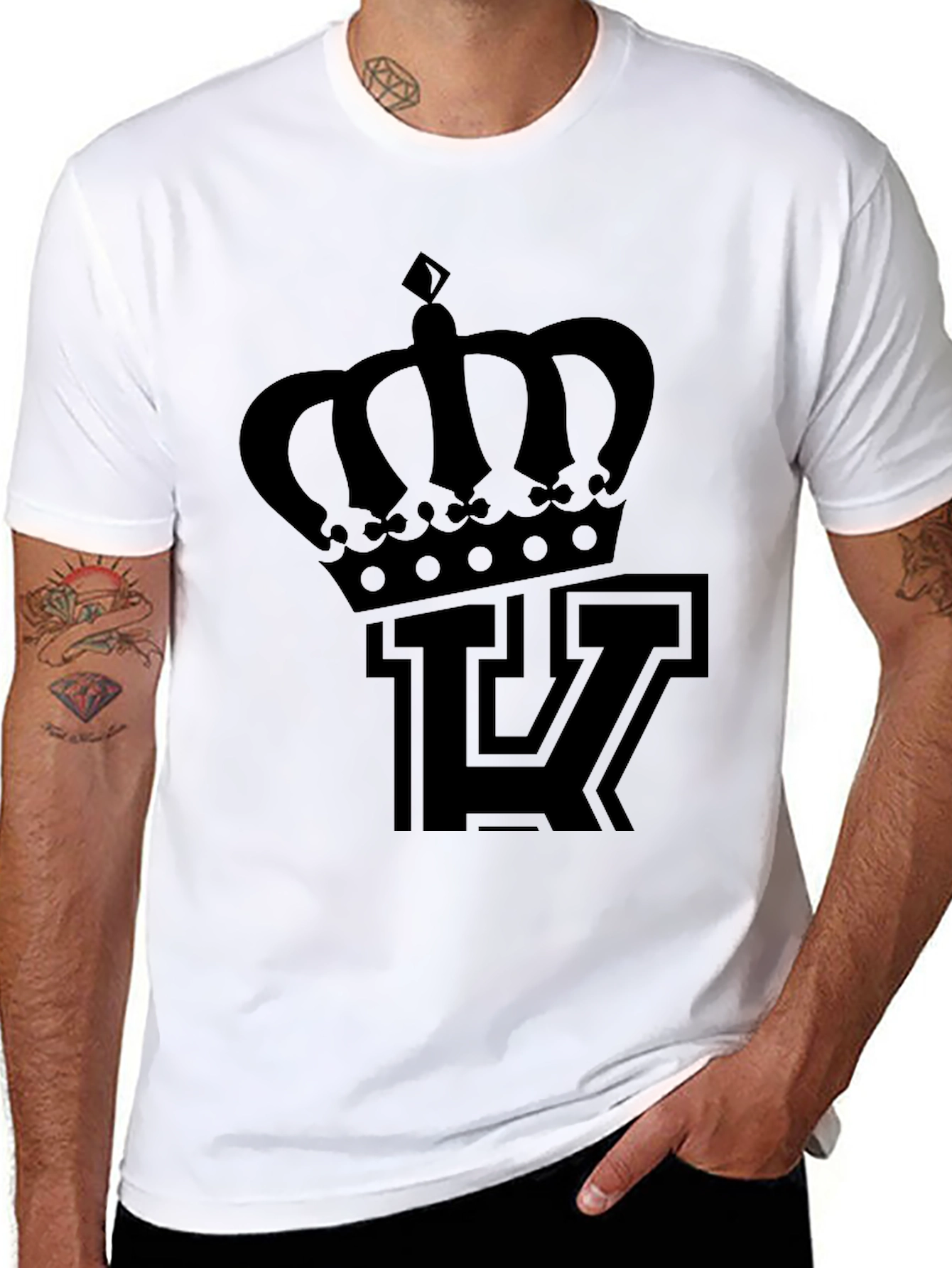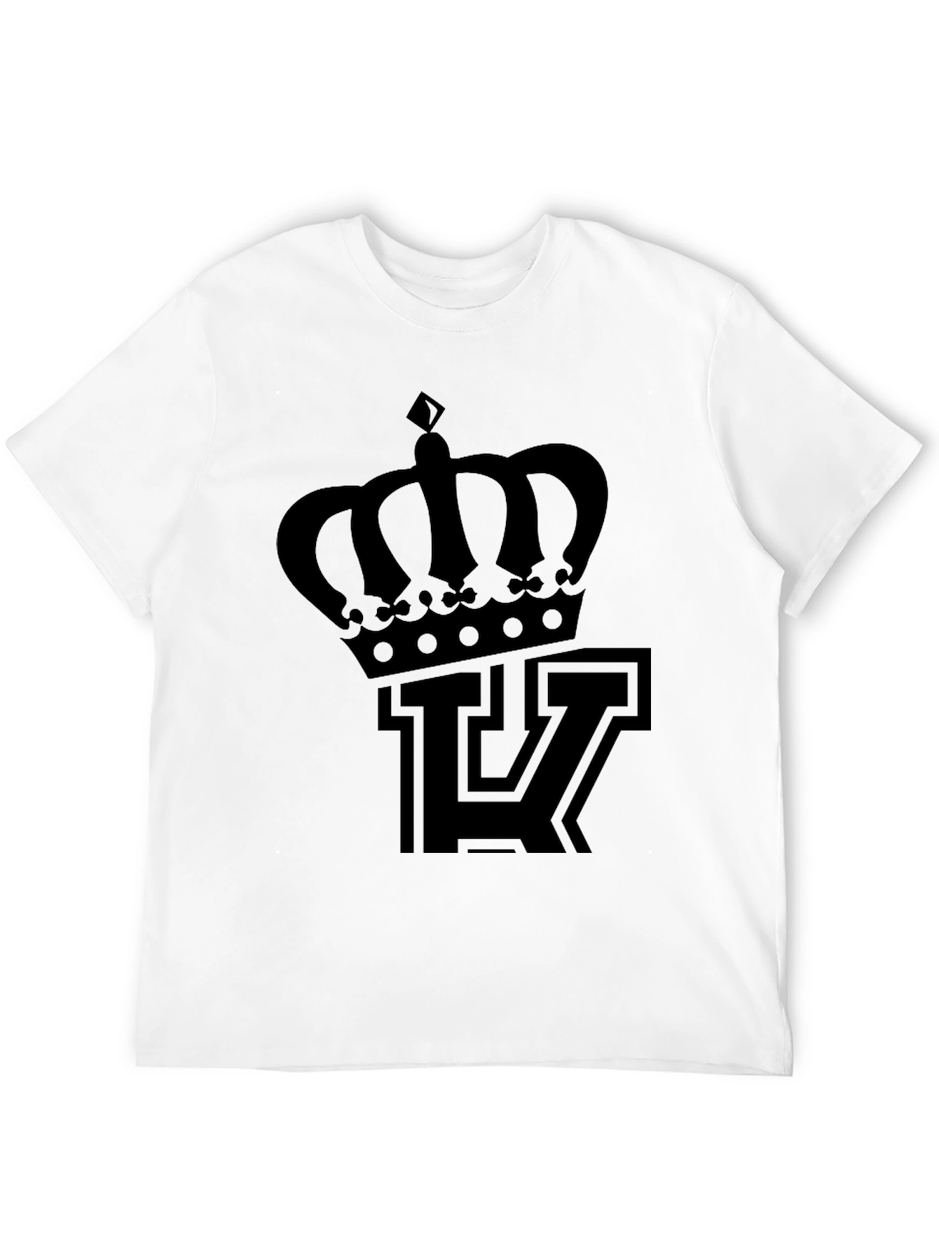Elevate your casual style with this striking men's graphic t-shirt. The design features a bold, stylized crown positioned above a letter "T", rendered in a solid black. The print offers a sleek, monochromatic aesthetic that's both eye-catching and versatile. Crafted from a comfortable, soft-touch fabric, this tee is perfect for everyday wear. The classic crew neck and short sleeves provide a relaxed fit, making it ideal for casual outings, layering, or lounging at home. Pair it with jeans, shorts, or joggers for a cool and effortless look.