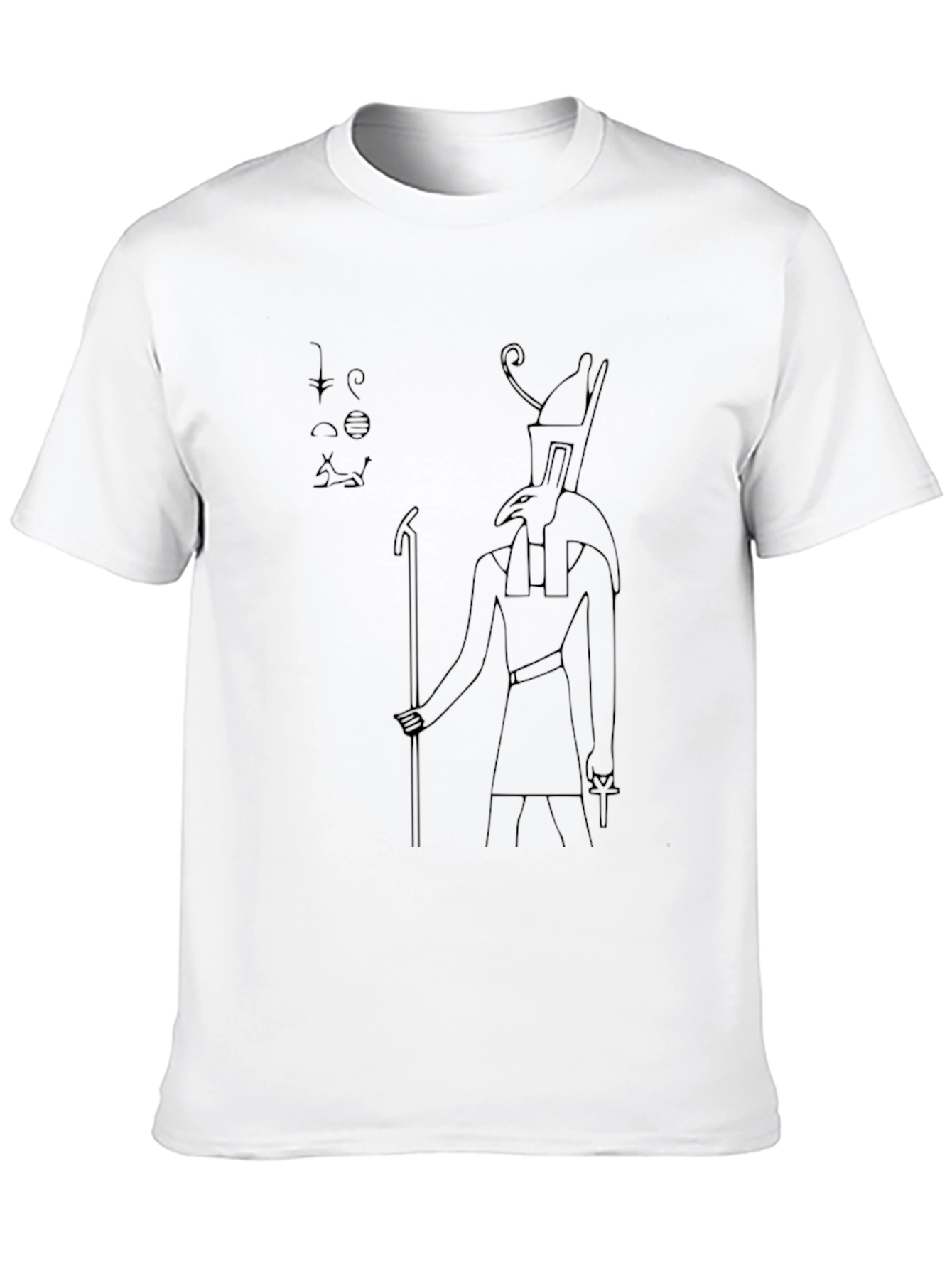 Embrace ancient wisdom with this unique black t-shirt featuring a striking graphic of the Egyptian god Thoth. The design showcases the iconic figure with hieroglyphic elements, creating a visually appealing and symbolic garment. Made from a comfortable, breathable fabric, this tee is perfect for everyday wear or as a statement piece for those interested in mythology and history. The minimalist black color makes it easy to pair with various outfits, while the detailed graphic adds a touch of intrigue. Wear your passion for ancient cultures with pride!