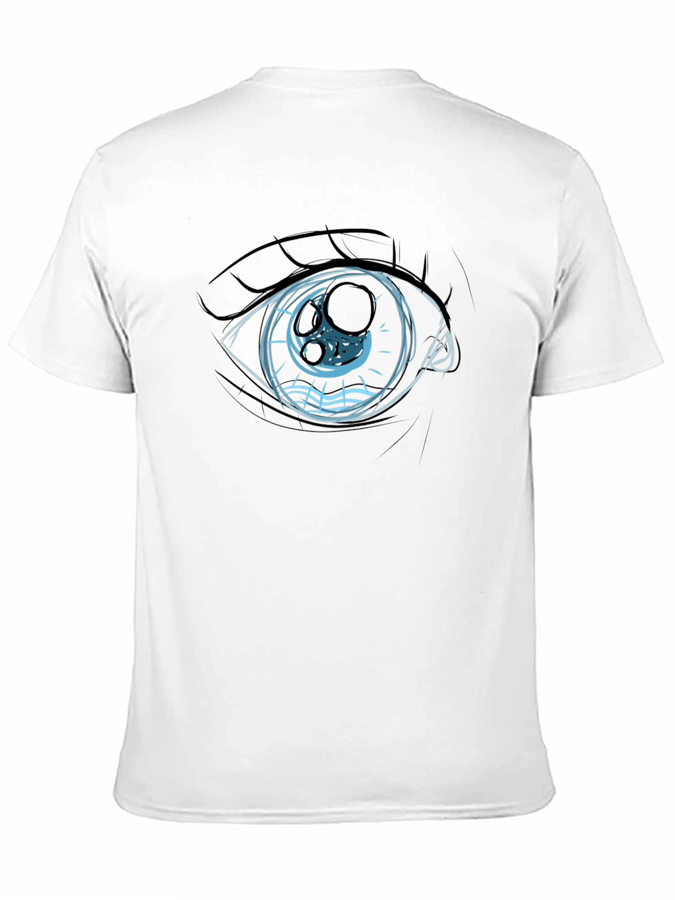 This eye-catching black t-shirt features a unique artistic graphic. The design resembles a detailed eye with intricate linework in a light blue shade against the stark black background. Made from what appears to be a soft, comfortable cotton blend, this tee offers a relaxed fit perfect for everyday wear. The design makes it a great conversation starter. Pair it with jeans or shorts for a casual yet stylish look. The eye graphic gives off a mysterious, artistic vibe, making it ideal for those who appreciate unique and expressive clothing. Whether you're heading to a concert, hanging out with friends, or just relaxing at home, this t-shirt is a versatile and comfortable choice. It¡¯s also a standout piece for anyone who wants to add a touch of artistic flair to their wardrobe.