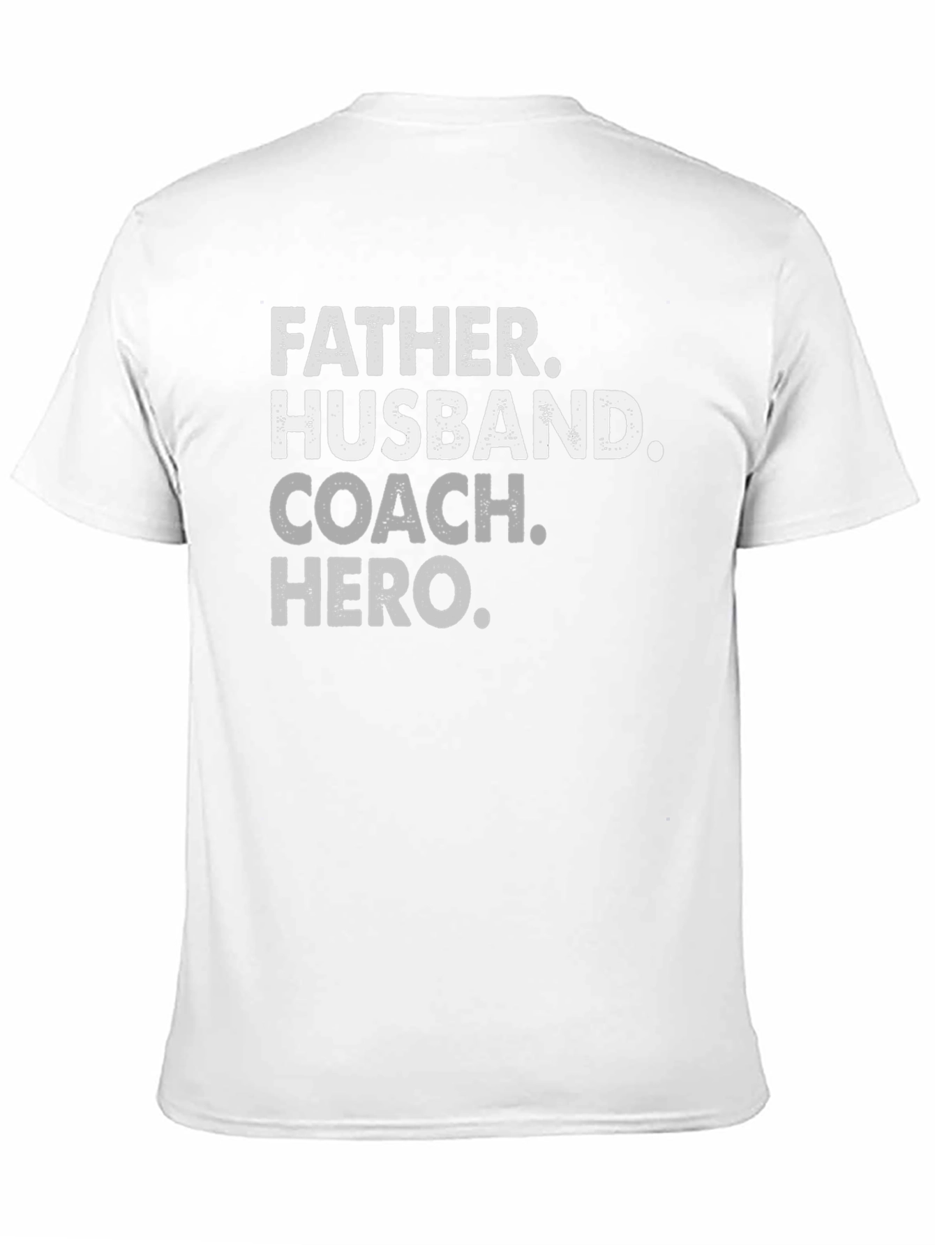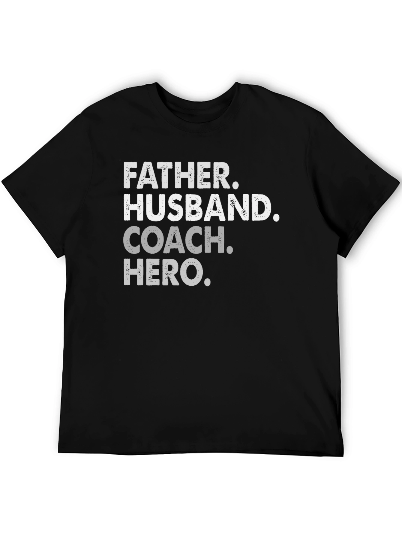 Show your appreciation with this "Father Husband Coach Hero" T-shirt. This bold black tee features distressed white lettering that adds a touch of vintage style. Ideal for everyday wear, this comfortable shirt makes a statement. The perfect gift for dads, coaches, or any man who embodies these admirable roles. Wear it with pride to sporting events, family gatherings, or casual outings. This shirt celebrates the multifaceted man in your life.