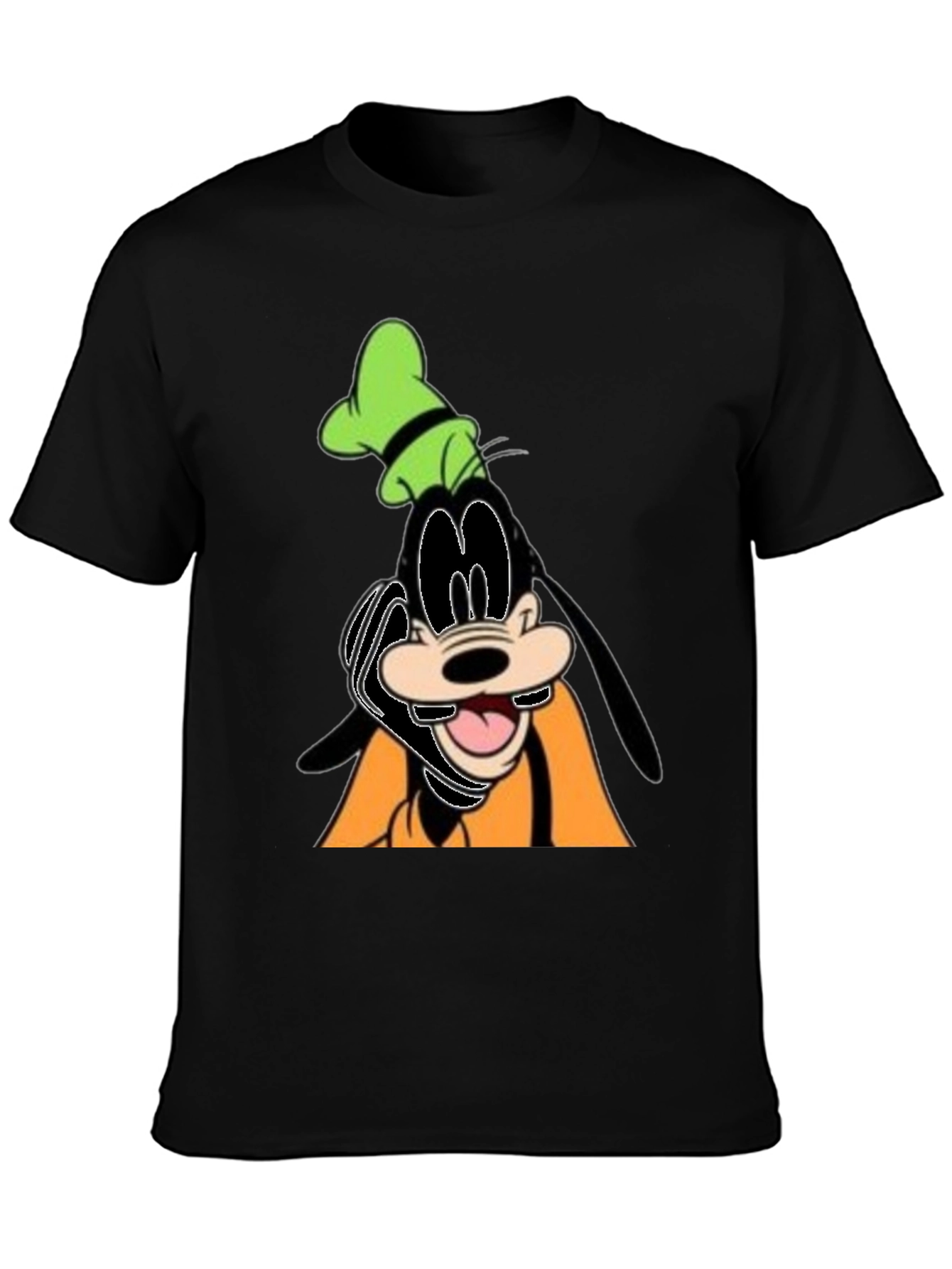 Show off your love for classic cartoons with this eye-catching black t-shirt! Featuring a vibrant Goofy graphic, this tee is made from a comfortable-looking material that is sure to be a soft and breathable wear. The bold print adds a touch of playful nostalgia to your wardrobe. Perfect for casual outings, theme park visits, or simply lounging at home, this t-shirt is a must-have for any Disney fan. Pair it with jeans, shorts, or your favorite bottoms for a fun and effortless look. Get yours today and spread some Goofy cheer!