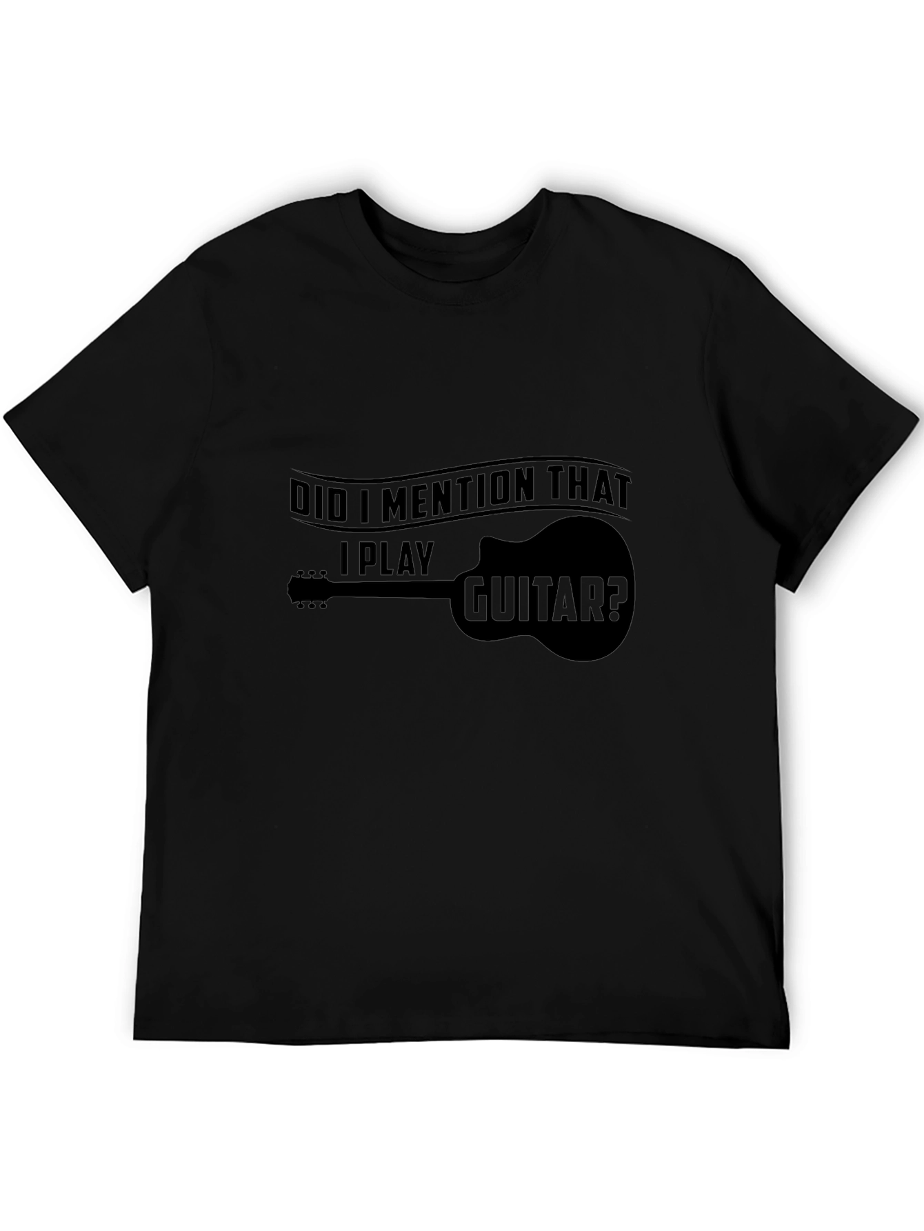 Show off your musical side with this stylish black t-shirt. This shirt features the text "Did I Mention That I Play Guitar?" creatively displayed with a guitar silhouette. Made from comfortable materials, this tee is perfect for casual wear, band practice, or concerts. It's a great conversation starter and a fun way to express your passion for music. Get yours today and let everyone know about your musical talent! A perfect gift for any guitar player.
