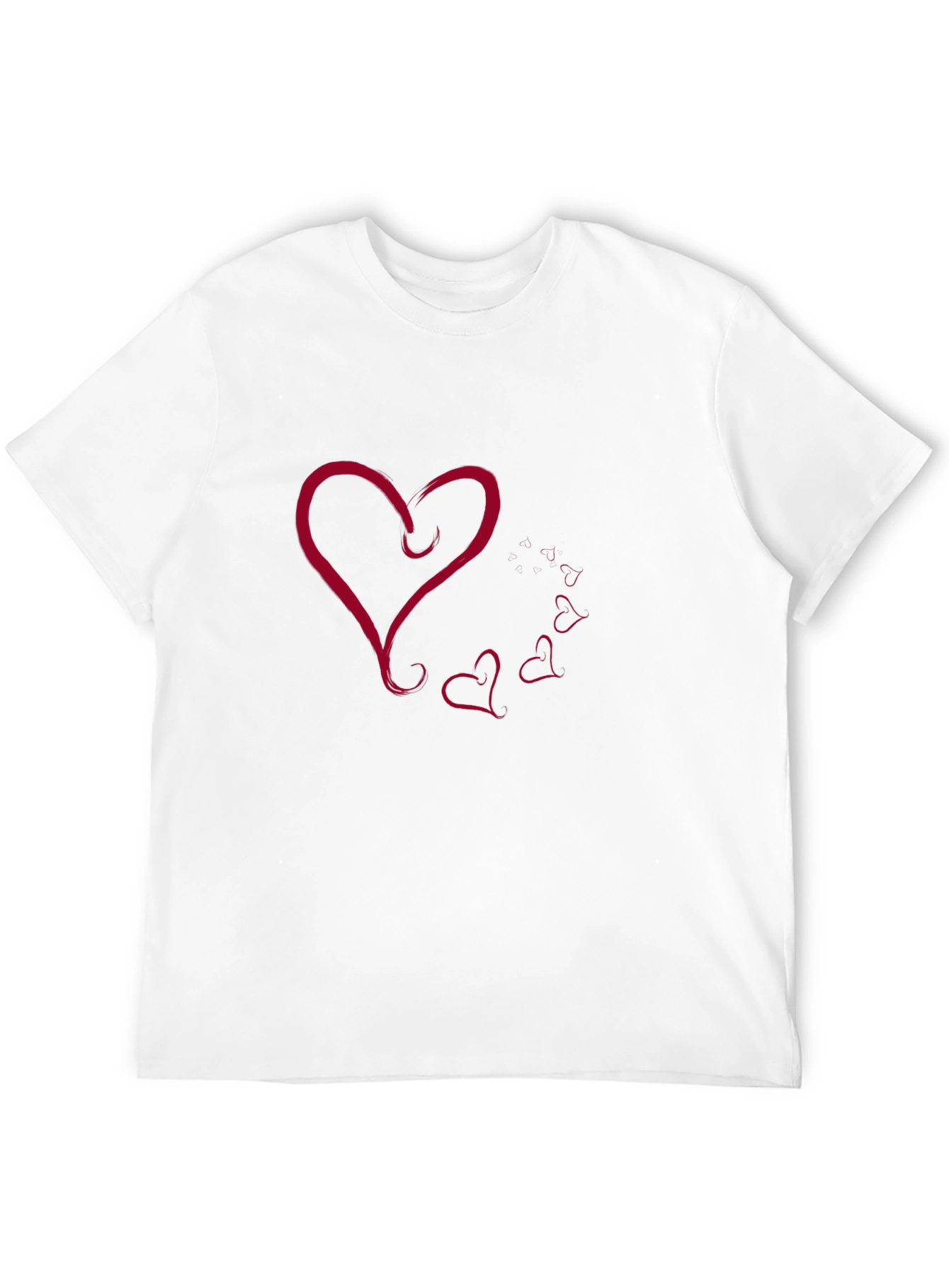 Show your love with this stylish black t-shirt! Crafted from soft, breathable fabric, this tee features a unique heart graphic on the front. A large heart creates the focal point of the shirt with a trail of smaller hearts, adding a touch of romance and flair. Perfect for casual outings, date nights, or simply expressing your fun personality. Pair it with jeans, shorts, or a skirt for versatile styling. A great gift for loved ones!