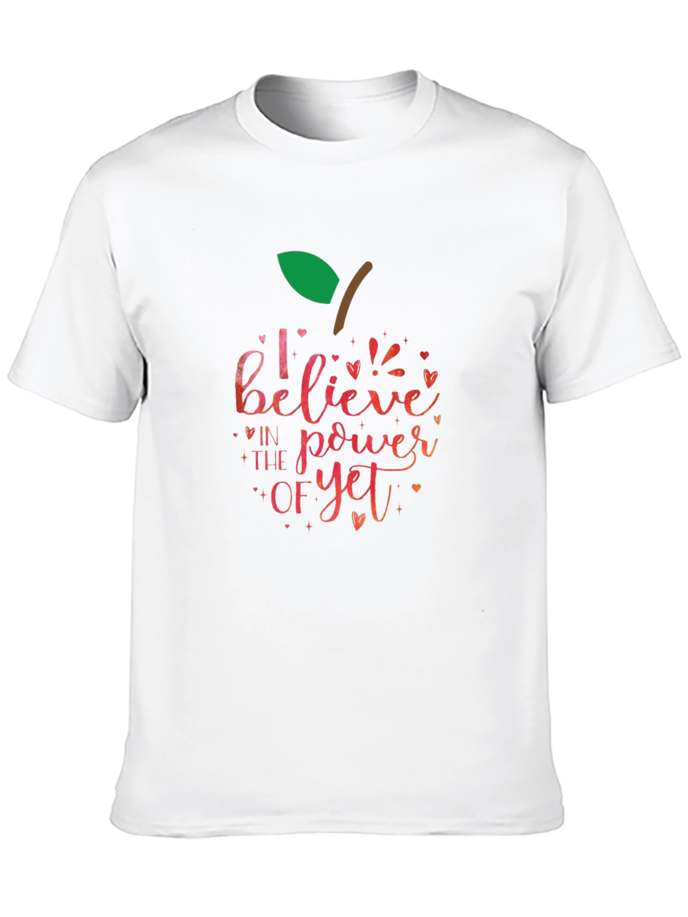 Show your support for education with this stylish black t-shirt! The eye-catching design features a colorful apple graphic with the phrase "I believe in the power of yet." The script is vibrant and lively, adding a touch of inspiration to your wardrobe. Made from a soft and comfortable fabric, this t-shirt is perfect for teachers, students, and anyone who believes in the potential for growth. Wear it to school, casual outings, or educational events to spread a positive message. A great way to show your commitment to learning and development!