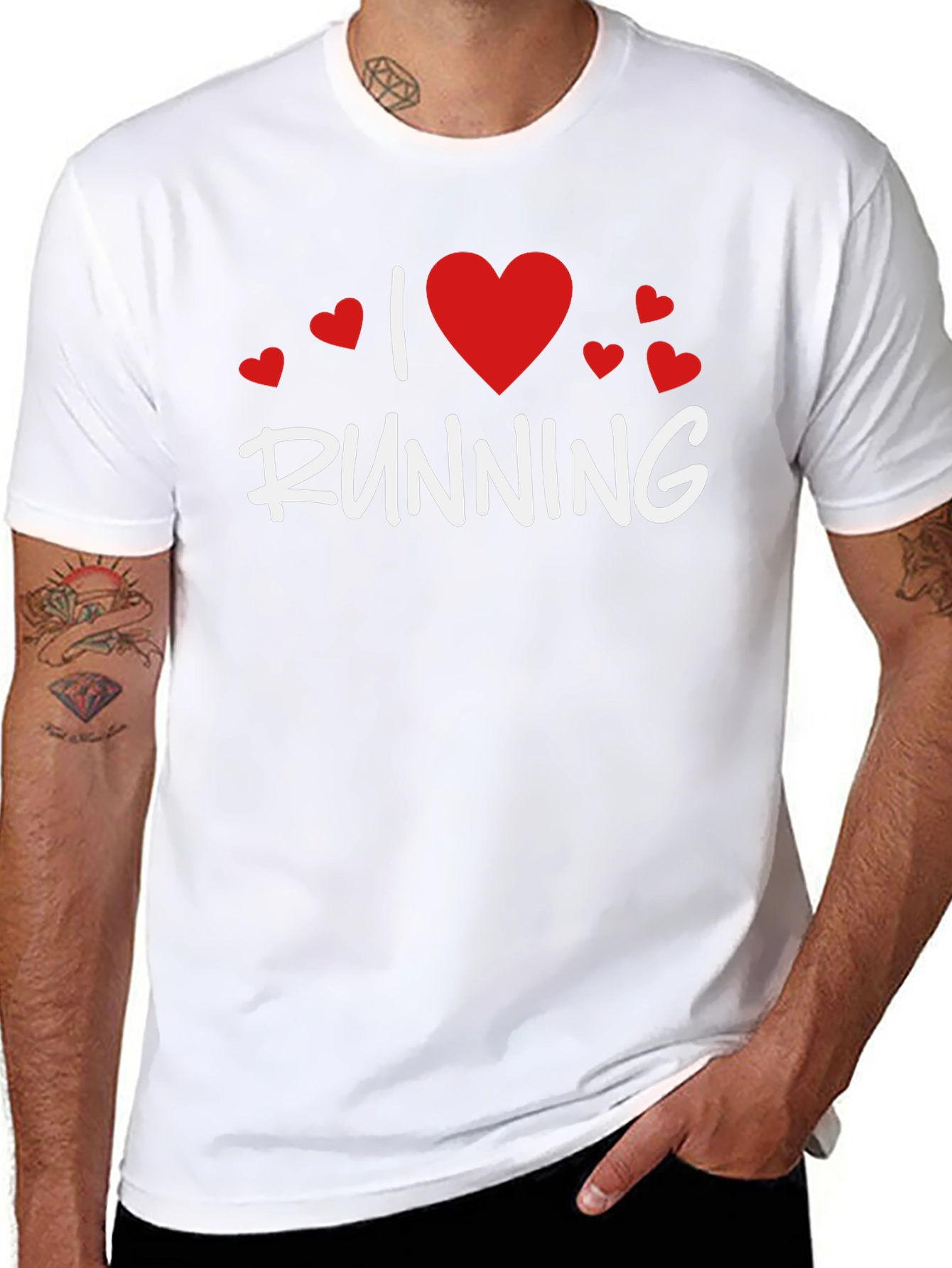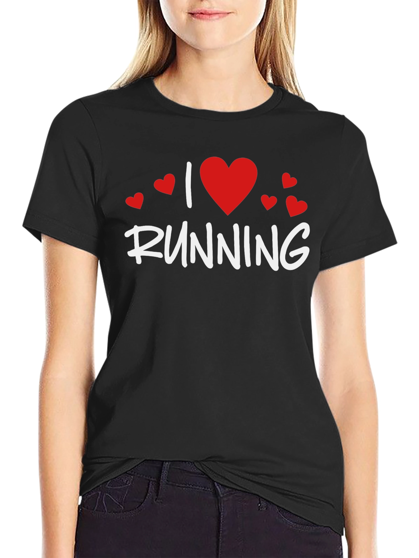 Show your passion for running with this stylish black T-shirt! This eye-catching tee features a playful "I Love Running" design with vibrant red heart accents. The clean, white lettering stands out against the dark background, creating a bold and sporty look. Made from what appears to be soft, breathable cotton, this shirt ensures all-day comfort, whether you're hitting the pavement or relaxing after a workout. The classic crew neck and short sleeves offer a versatile fit. Perfect for runners, joggers, or anyone who loves an active lifestyle. Express your love for the sport with this must-have running tee!
