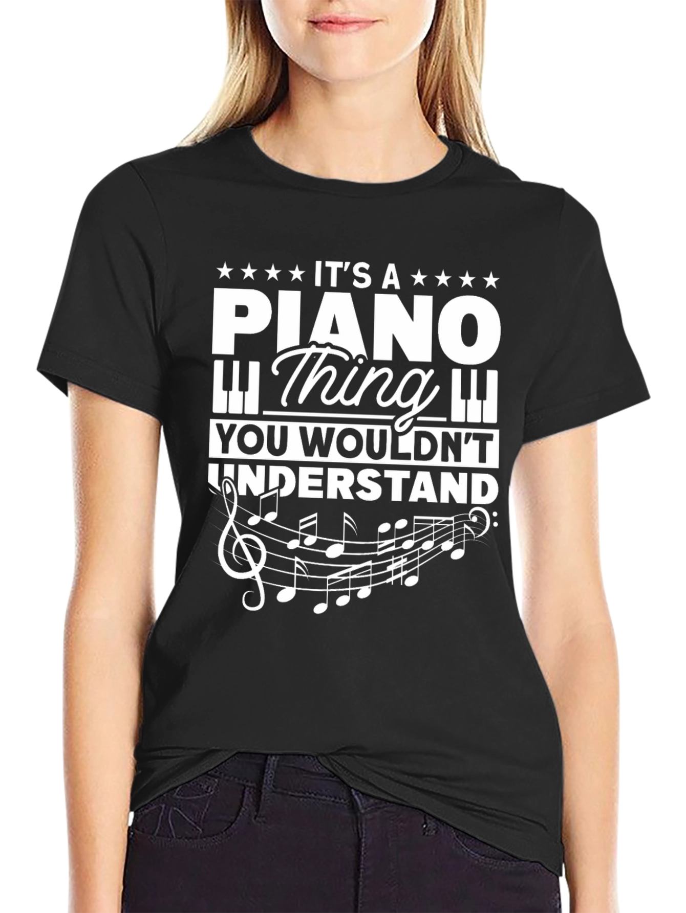 Express your passion for music with this stylish black T-shirt! Featuring the text "It's A Piano Thing You Wouldn't Understand" printed in a bold, eye-catching white font. The design includes a musical clef and musical notes, making it perfect for musicians, piano players, and music enthusiasts. Made from comfortable fabric, this tee is great for casual wear, concerts, or music lessons. Show off your love for piano with this unique and comfortable shirt!