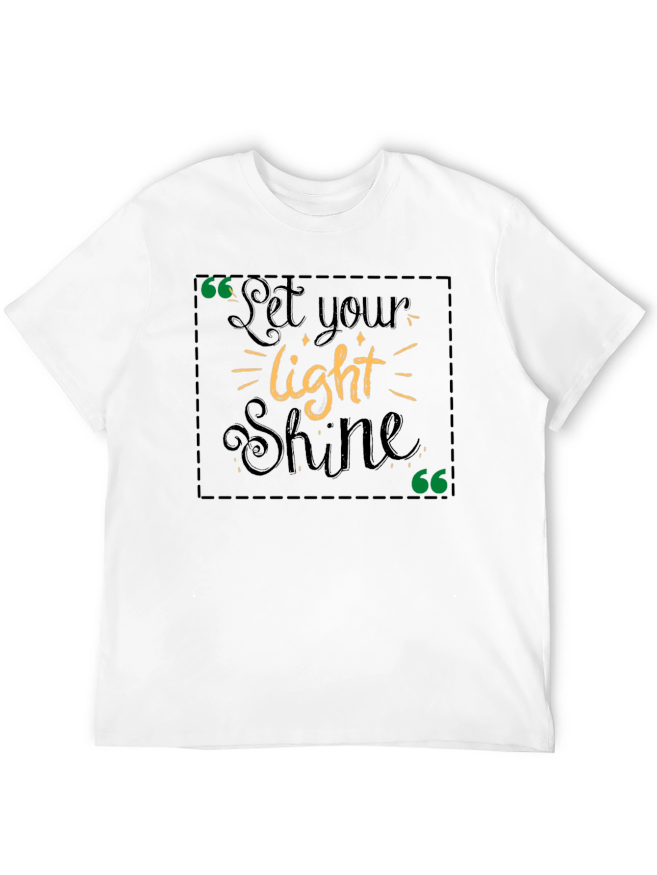Shine bright in our "Let Your Light Shine" graphic t-shirt. This black tee features a stylish design with uplifting typography. The bold print is eye-catching and adds a positive vibe to your outfit. Made from soft, breathable fabric, this shirt offers all-day comfort. Perfect for casual wear, workouts, or just lounging around, this tee is a versatile addition to your wardrobe. Pair it with jeans, shorts, or leggings for a trendy look. Let your style radiate positivity with this inspiring t-shirt.
