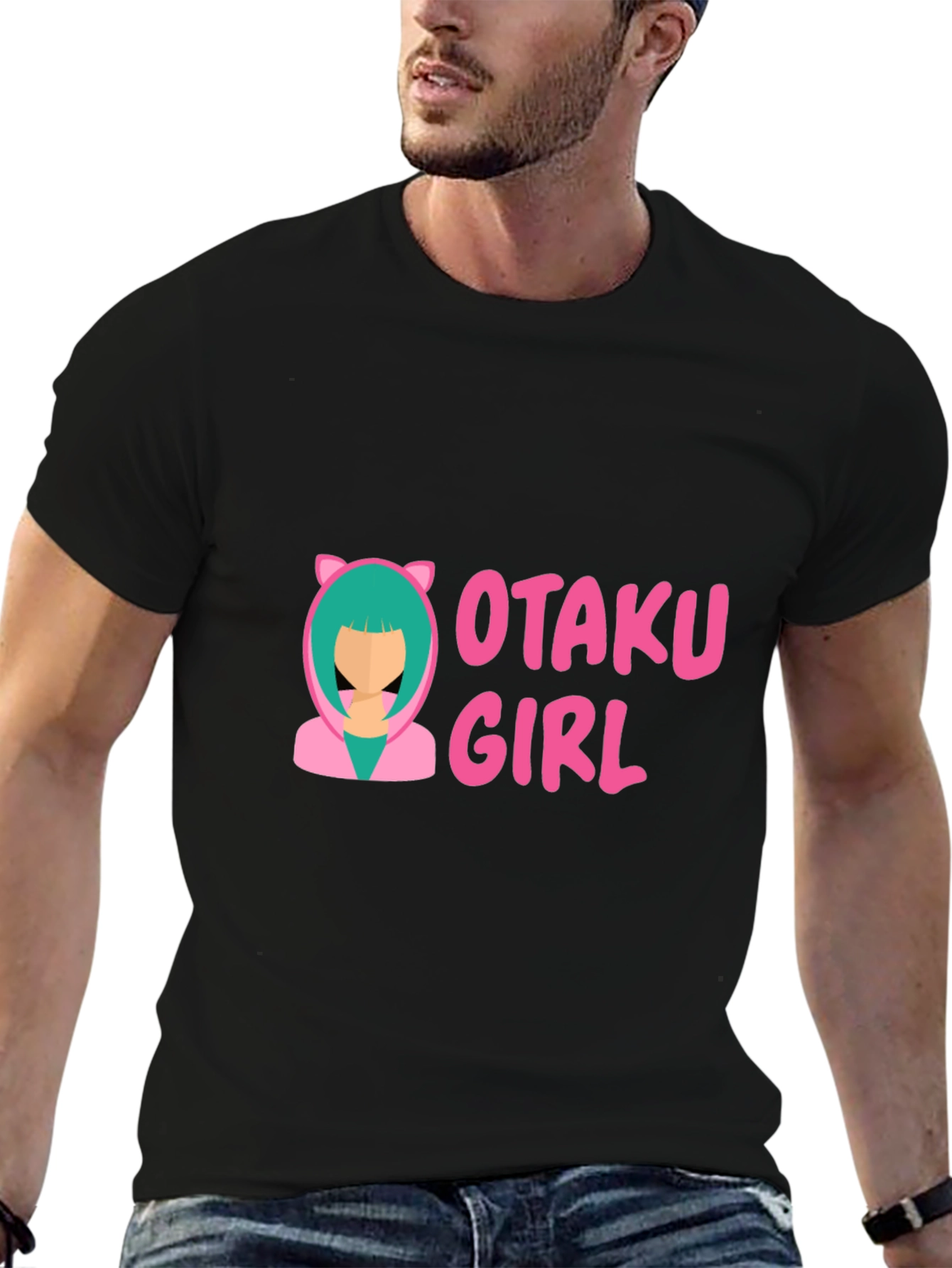 Show off your love for anime with this eye-catching Otaku Girl graphic tee! This black t-shirt features a vibrant and playful design with the words "Otaku Girl" in bold pink lettering, alongside a stylized image of a girl with turquoise hair and cat-ear hoodie. Perfect for casual wear, anime conventions, or expressing your unique style. Comfortable fit for everyday use. Stand out from the crowd and let your inner otaku shine with this unique and fun t-shirt!