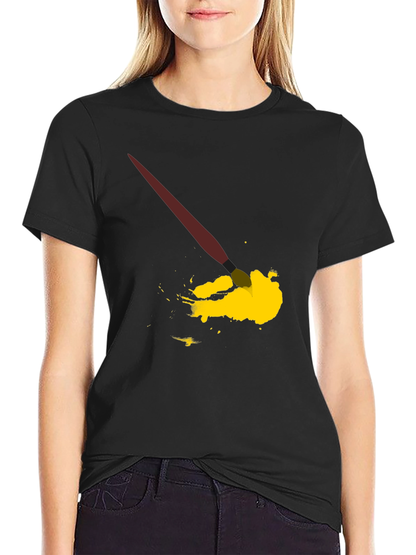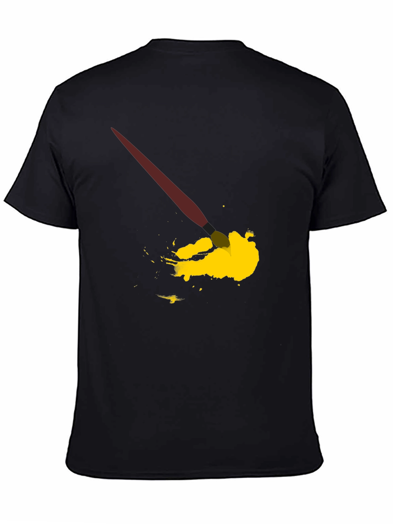 Express your creative side with this unique black t-shirt. Featuring a bold graphic of a paintbrush with a vibrant yellow paint splatter, this tee is perfect for artists and art enthusiasts alike. The design creates a striking visual contrast, making it a standout piece in any wardrobe. Made from comfortable, breathable fabric, it's ideal for everyday wear, art classes, or casual outings. Showcase your passion for art with this eye-catching and stylish t-shirt. A perfect addition to your casual wardrobe, this shirt is sure to turn heads and spark conversation.