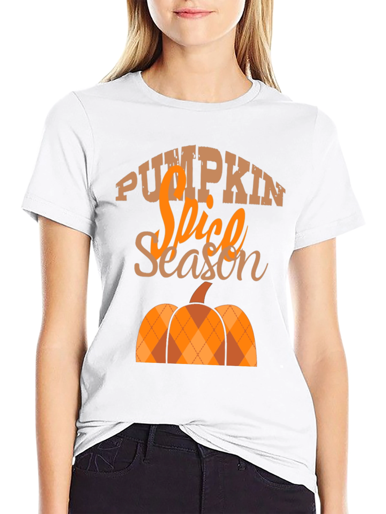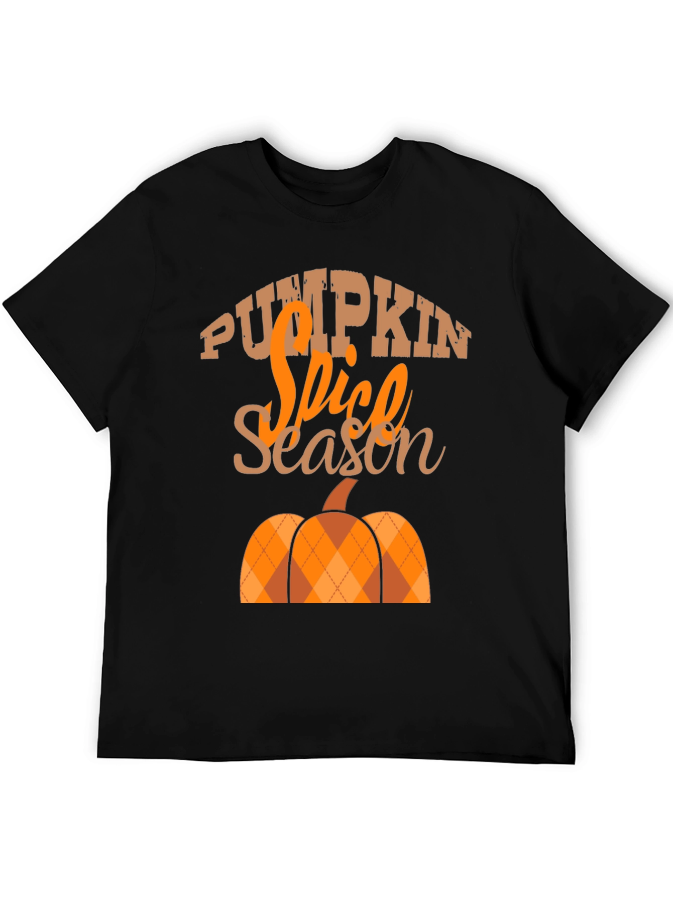 Embrace the autumn vibes with this stylish "Pumpkin Spice Season" graphic tee. Featuring a playful pumpkin design with an argyle pattern in warm orange and brown tones, this black t-shirt is perfect for fall festivities. The comfortable fit and eye-catching print make it ideal for casual outings, pumpkin patch visits, or simply enjoying the cozy season. Made with a soft, breathable fabric, this tee offers all-day comfort and effortless style. Show off your love for pumpkin spice and everything nice with this must-have seasonal staple!