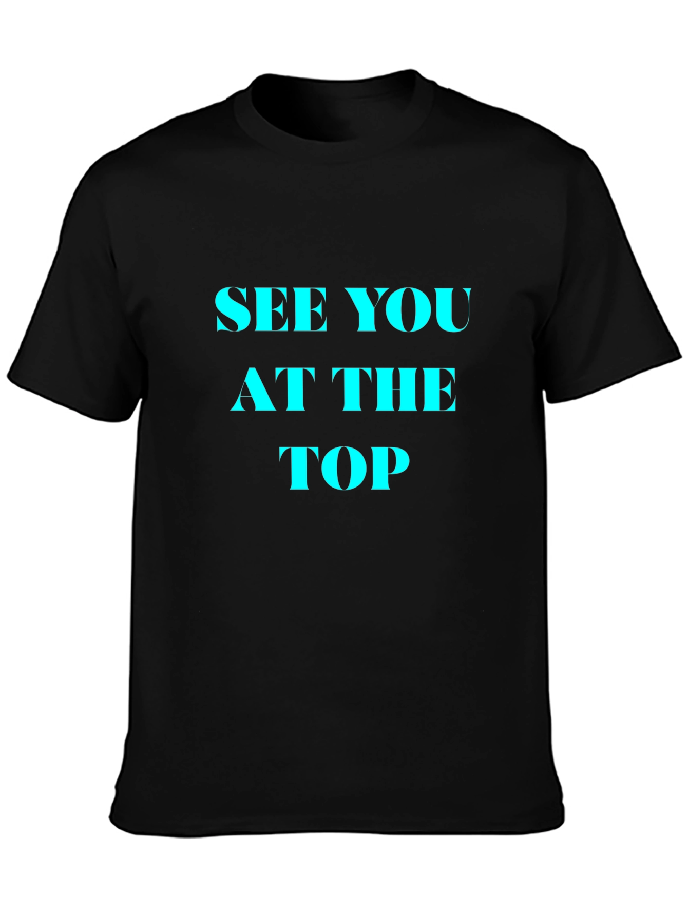 This stylish black t-shirt features a bold, cyan blue statement, "SEE YOU AT THE TOP," making it a perfect choice for those who are driven and ambitious. The classic crew neck and short sleeves provide a comfortable and relaxed fit, suitable for everyday wear. Made from a soft and breathable fabric, this tee is ideal for casual outings, gym sessions, or simply lounging around. Show off your positive mindset with this eye-catching and motivational t-shirt. It's a great conversation starter and a reminder to always strive for excellence. Grab yours today and inspire others with your unwavering determination!