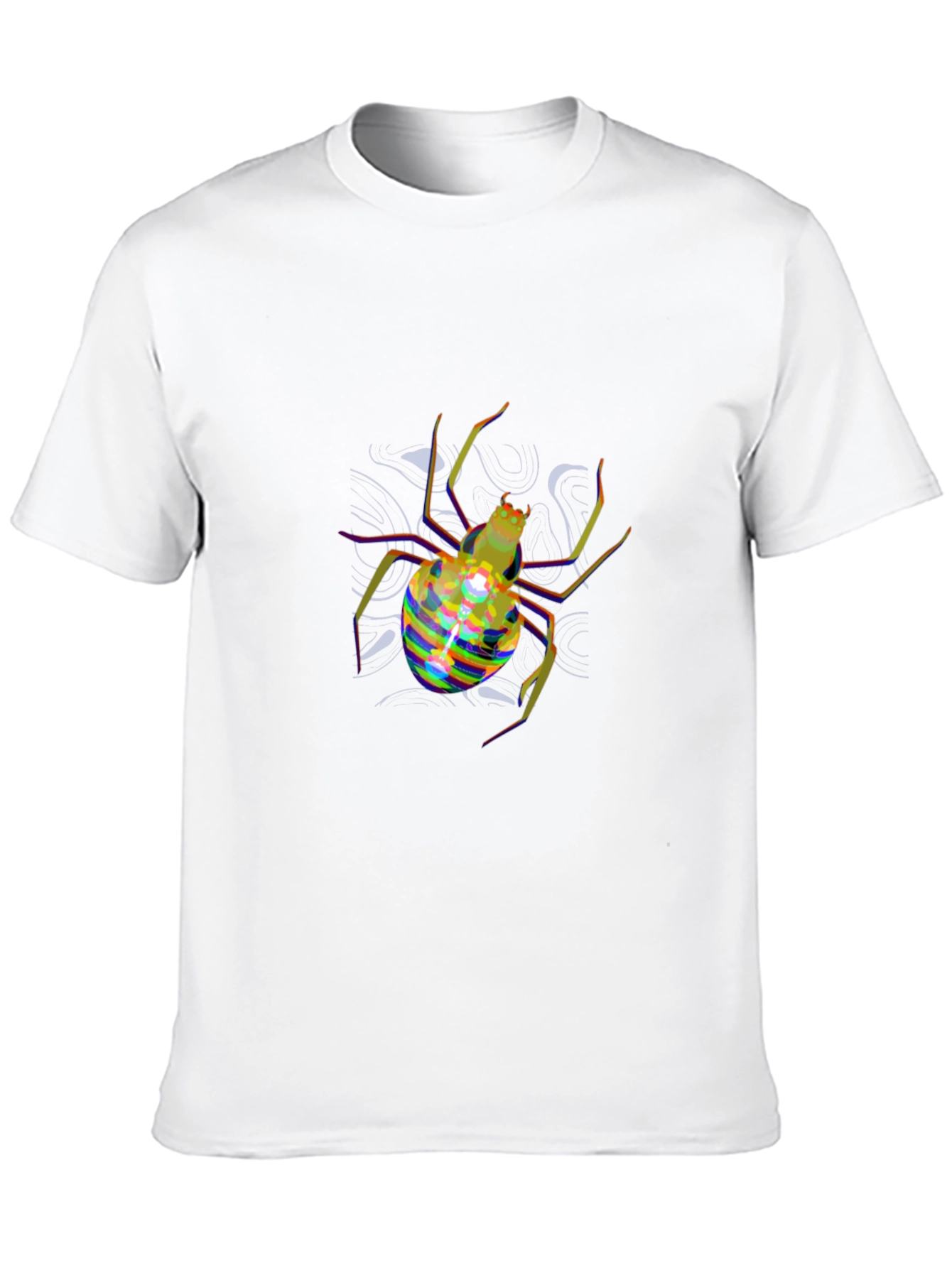 Make a statement with this unique black t-shirt featuring a vibrant, abstract spider graphic. The eye-catching design showcases a detailed spider with a colorful, striped body and long, stylized legs. Made from a comfortable, breathable fabric, this tee is perfect for casual wear, concerts, or expressing your individuality. Pair it with jeans or shorts for an effortless, edgy look. The distinctive spider print is sure to turn heads and spark conversations. Show off your love for unique art and stand out from the crowd with this must-have graphic tee.