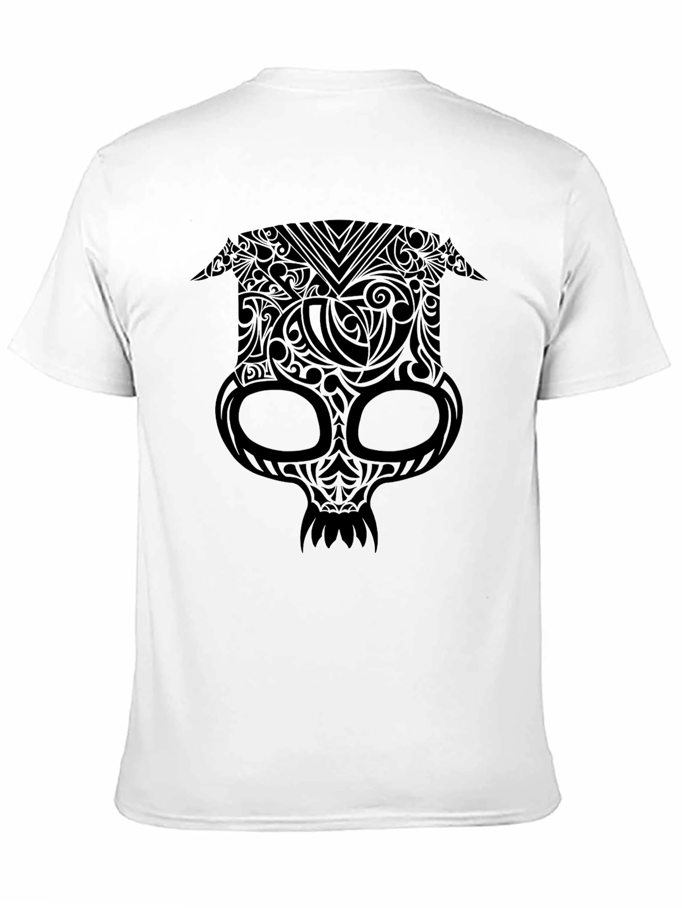 Make a bold statement with this striking black t-shirt featuring a unique tribal-inspired skull graphic. The intricate design incorporates traditional patterns for an eye-catching look. Crafted from a soft and comfortable fabric, this tee is perfect for everyday wear. The classic crew neck and short sleeves ensure a relaxed fit. Wear it casually with jeans, or dress it up with a jacket for a night out. Express your individuality and stand out from the crowd with this one-of-a-kind graphic tee.