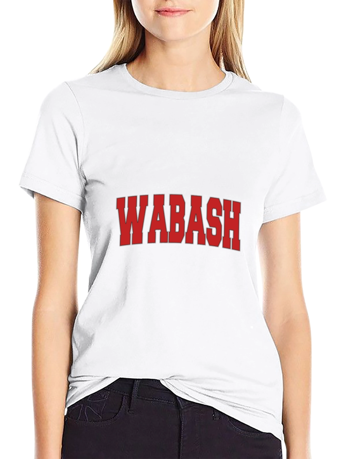 Show off your school pride with this classic Wabash graphic t-shirt. The shirt features a bold "WABASH" text design in red with a subtle white outline, prominently displayed on a solid black background. Made from what appears to be a soft, comfortable cotton blend, this tee is perfect for everyday wear. Its relaxed fit ensures comfort, whether you're hitting the books, heading to a game, or just lounging around. This tee is a must-have for Wabash College students, alumni, and fans. Wear it with pride and represent your school in style!