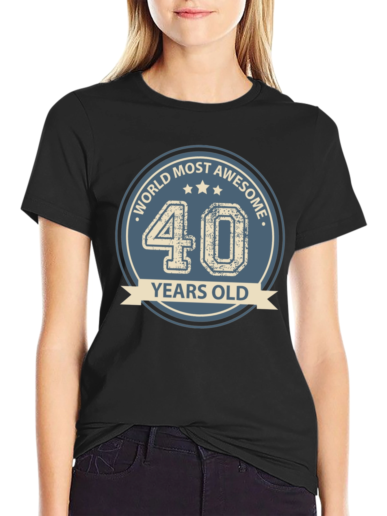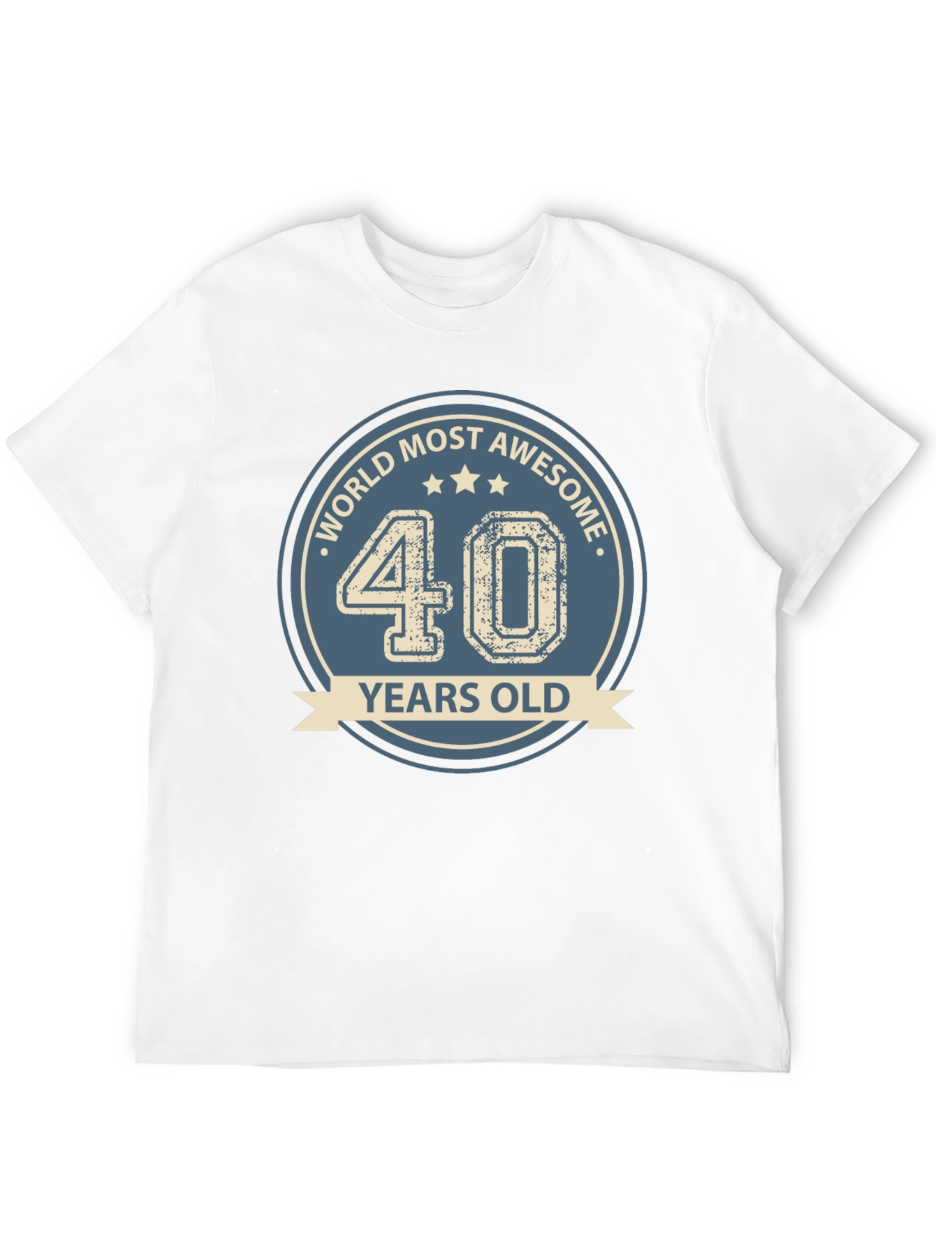 Celebrate a milestone with this stylish and humorous "World's Most Awesome 40 Years Old" t-shirt. This black, short-sleeved tee features a bold, vintage-style graphic in a circular design. The graphic showcases the number '40' with a distressed texture, accompanied by three stars and the playful text. A ribbon banner underlines the number, proudly declaring 'Years Old'. This shirt is perfect for birthday parties, casual outings, or as a fun gift for someone turning the big 4-0. Made from comfortable, breathable fabric, it's sure to be a wardrobe favorite!