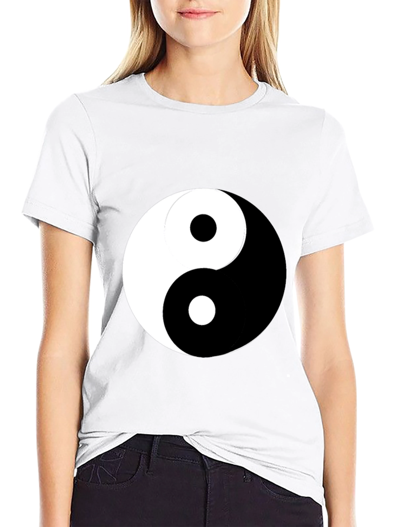 Embrace balance with this classic Yin Yang graphic t-shirt. This comfortable black tee features the iconic Yin Yang symbol prominently displayed on the front. Made from a soft, breathable fabric, it's perfect for everyday wear. The design is bold and eye-catching, making it a statement piece for casual outings or a comfortable choice for lounging at home. Show off your appreciation for harmony and style with this versatile tee. It's a great conversation starter and a timeless addition to any wardrobe.